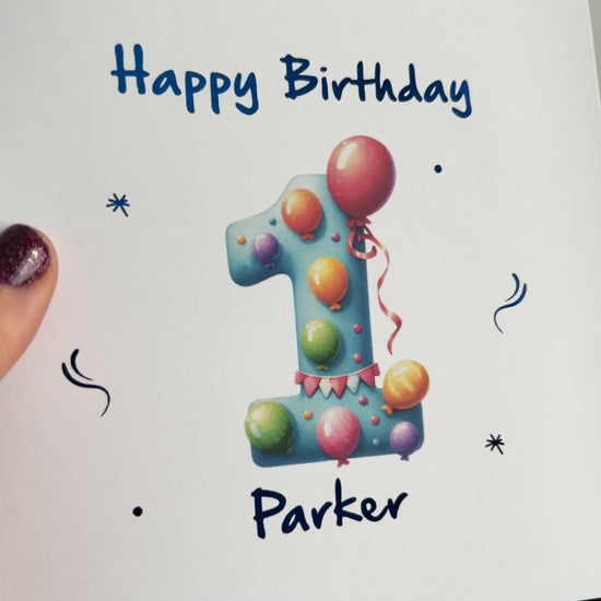 Children's birthday card, any age available. Colourful number card with writing and decoration in foil to make it extra special (see video). Any name and number can be added, please leave the details in the comments box.