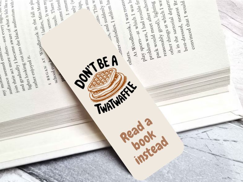 Humorous bookmark - Don't be a tw*twaffle, read a book instead