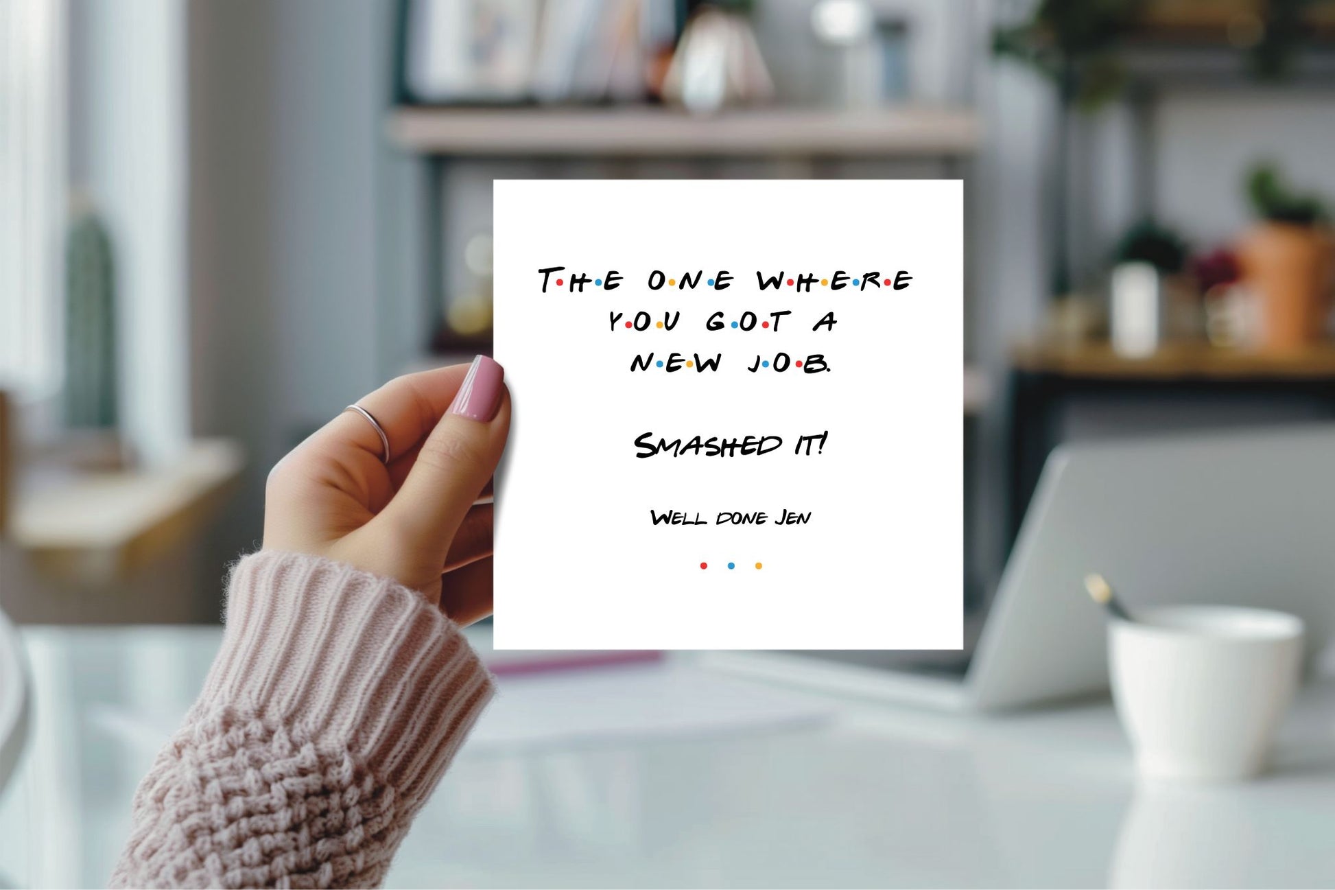 Perfect way to say good luck in your new job. Friends style card that can be personalised.